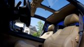 The cabin features seating surfaces upholstered in tan leather with matching carpets, door panel inserts, and headliner. Amenities include cruise control, air conditioning, power aLessories, a tilt-adjustable steering wheel, black MR2-branded floor mats, and a factory premium sound system with a CD player.