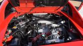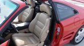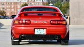 The car is finished in Super Red (3E5) and features a T-bar roof with removable glass panels and sun shades as well as a rear spoiler, pop-up headlights, fog lights, side air inlets, a turbo-specific engine lid, Japanese-market side marker lights, a powered antenna, and dual exhaust outlets with polished tips.