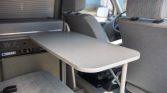 Winnebago appointments in addition to the pop-up roof include a two-burner stove, a sink, a refrigerator, a furnace, and water-storage tanks. The van is equipped with adjustable tables, closets, and drawer spaces as well as convertible middle and rear bench seats that turn into a bed.