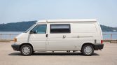 This 1995 Volkswagen EuroVan was converted into a pop-top camper by Winnebago when new and reportedly spent decades in Japan before being imported to the United States by the seller in May 2021. The van is finished in white over gray cloth upholstery and is equipped with three rows of seating, a pop-up roof tent, a refrigerator, a gas stove, a sink, two beds, water-storage tanks, adjustable tables, air conditioning, a Pioneer AM/FM/CD stereo, and a retractable awning. Power is provided by a 2.5-liter inline-five paired with a four-speed automatic transmission, and recent service is said to have included replacing the water pump, A/C pump, accessory belt and tensioner, timing belt, valve-cover gasket, camshaft seal, thermostat, and driveshafts.