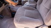 The cabin features replacement seats upholstered in Medium Mocha Eddie Bauer cloth joined by a matching dashboard, carpet, and door panels. Amenities consist of power-adjustable front seats, a rear bench seat, cruise control, air conditioning, power windows and door locks, and an aftermarket Kenwood CD stereo.