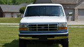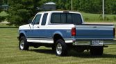 This 1996 Ford F-250 XLT is a SuperCab short-bed 4×4 pickup that is finished in two-tone Oxford White and Indigo Blue Metallic over blue cloth, and it is powered by a 7.5L V8 paired with a four-speed automatic transmission and a dual-range transfer case. Equipment includes air conditioning, cruise control, a Kenwood stereo, power windows, forged alloy wheels, dual fuel tanks, and a drop-in bedliner and tonneau cover. The truck was first registered in Oregon, and it was acquired…