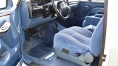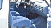 The interior is trimmed in blue cloth with a color-matching dashboard, door panels, and carpets. Features include front armrests and center console storage, while amenities include air conditioning, cruise control, tilt steering, power windows and locks, and a Kenwood stereo with Bluetooth connectivity.