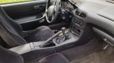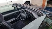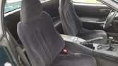 The cabin features bolstered seats upholstered in black cloth with matching carpets and trim. Rubber floor mats line the footwells, and interior equipment includes power door locks, windows, and mirrors in addition to cruise control and a factory cassette stereo.