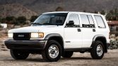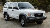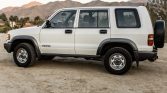 This 1996 Isuzu Trooper is finished in white over gray cloth, and it is powered by a 3.2-liter V6 paired with a five-speed manual transmission and a dual-range transfer case. Equipment includes a rear-mounted spare wheel and tire, a receiver hitch, a vertical-split tailgate, steel wheels, air conditioning, cruise control, power aLessories, and a digital AM/FM/cassette stereo. The truck was reportedly purchased new at Royal Isuzu of Tucson, Arizona, and remained in the state with its first owner until its acquisition by the seller in March 2021. Recent service has reportedly included changing fluids and replacing the timing belt, water pump, battery, and drive belts. This Trooper shows 75k miles and is now offered at no reserve with an owner’s manual, an uninstalled Thule roof rack, a replacement spare tire cover, a clean Carfax report, and a clean California title in the seller’s name.