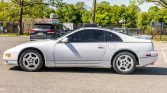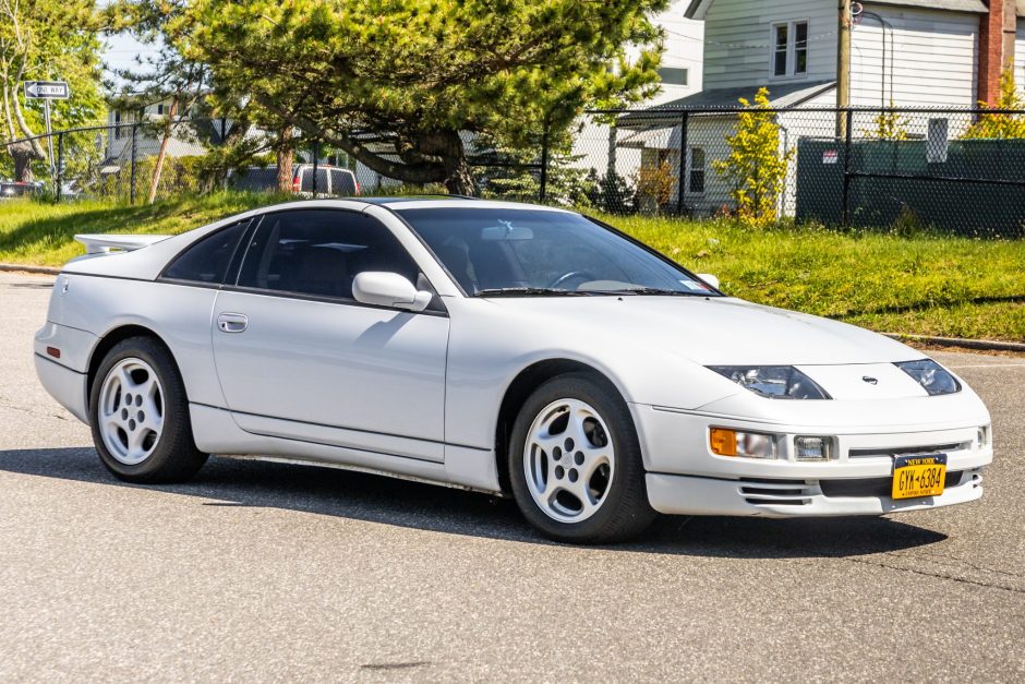 This 1996 Nissan 300ZX Twin Turbo is finished in Arctic White Pearl over tan leather and powered by a twin-turbocharged 3.0-liter V6 paired with a five-speed manual transmission. Equipment includes removable glass T-tops, tinted windows, 16″ alloy wheels, fog lights, power aLessories, cruise control, Super HICAS four-wheel steering, and an aftermarket sound system.