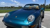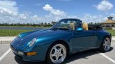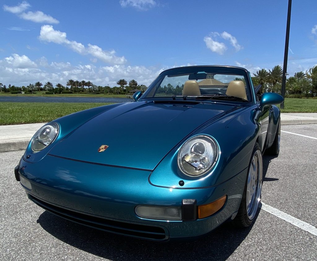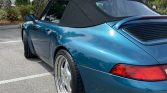 This 1996 Porsche 911 Carrera cabriolet is finished in turquoise over beige leather and is powered by a 3.6-liter flat-six paired with a four-speed Tiptronic automatic transaxle. Equipment includes a black convertible top, heated and power-adjustable front seats, air conditioning, cruise control, an AM/FM/cassette stereo, and a trunk-mounted six-disc CD changer. Modifications include modular 18″ wheels, Bilstein shocks, and lowering springs. The car was first registered in Nevada, and it was relocated to Washington prior to its…