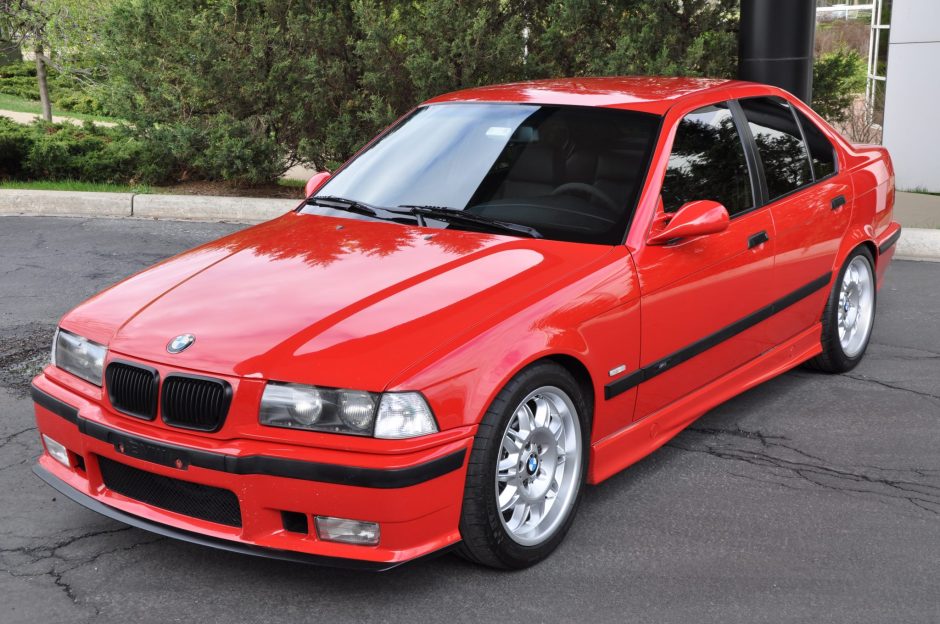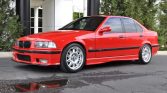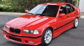 This 1997 BMW M3 sedan is finished in red over black leather and powered by a 3.2-liter inline-six paired with a five-speed manual transmission and a limited-slip differential. Modifications are said to include a Dinan exhaust system, engine cover, front strut tower brace, short shifter, and Stage 2 engine management software as well as H&R sport springs, Bilstein sport shocks and struts, and a Stewart Components high performance water pump. It is also equipped with 17″ Style…