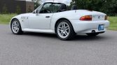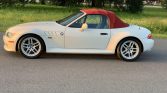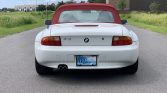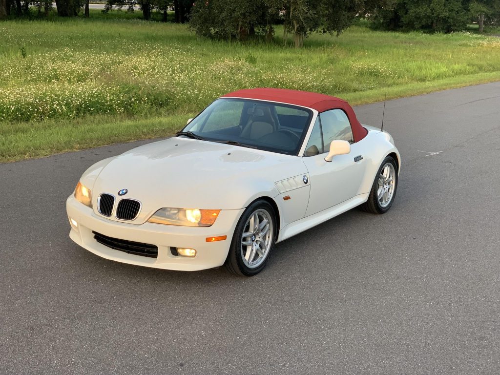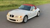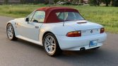 This 1997 BMW Z3 is finished in white over black leather and is powered by a 2.8-liter inline-six paired with a five-speed manual transmission and a limited-slip differential. Equipment includes a burgundy convertible soft top, air conditioning, cruise control, power-adjustable and heated seats, and a Sony CD stereo.