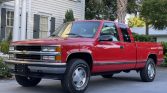 This 1997 Chevrolet Silverado K1500 is an extended-cab 4×4 example finished in red over gray cloth, and it is powered by a 5.7-liter V8 mated to a four-speed automatic transmission and a dual-range transfer case. Equipment includes the Z71 Off-Road Package, a receiver hitch, chrome bumpers, cruise control, air conditioning, 16″ alloy wheels, a power-adjustable driver seat, and a factory cassette/CD stereo. The truck spent time in North Carolina, Virginia, Arizona, and Georgia before it was acquired by the selling dealer in March 2021. This Silverado shows 20k miles and is offered at no reserve in South Carolina with a clean Carfax report and a clean Arizona title.