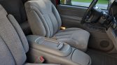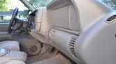 The cab features high-back front bucket seats and a rear bench upholstered in gray cloth with matching plastics, carpets, and rubber floor mats. Amenities include cruise control, air conditioning, an AM/FM cassette stereo with a separate in-dash CD player, power windows and locks, remote keyless entry, and a center console. The front seats have power adjustments for the driver and lumbar support for both front oLupants.
