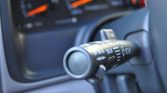 A four-spoke steering wheel frames a 100-mph speedometer, a tachometer, and auxiliary gauges. The six-digit mechanical odometer shows 20k miles.