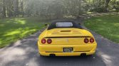 The Pininfarina-designed body is finished in Giallo Modena and features a black convertible soft top as well as pop-up headlamps, integrated fog lights, a vented engine cover, an integrated rear decklid spoiler, quad exhaust outlets, and air intakes on the doors and rocker panels.