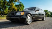 This 1997 Mercedes-Benz S600 is powered by a 6.0-liter V12 paired with a five-speed automatic transmission, and it is finished in black over matching leather. Equipment includes 18″ AMG Monoblock wheels, adaptive dampers, xenon headlights, a glass sunroof, tinted rear windows, heated seats, automatic climate control, a period carphone, an electric rear sunshade, and a factory stereo with an aftermarket Bluetooth adapter. Work performed since 2018 has included an oil change, refinishing of the wheels and several…