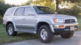This 1997 Toyota 4Runner Limited is powered by a 3.4-liter 5VZ-FE V6 linked with a four-speed automatic transmission, a dual-range transfer case, and a locking rear differential. It is finished in Desert Dune Metallic over Oak leather and features 16″ alloy wheels, a sunroof, air conditioning, a CD player, cruise control, and a power rear window.