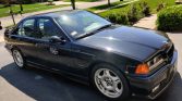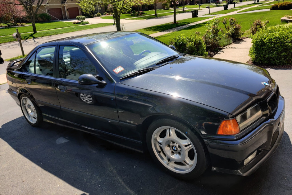 This 1998 BMW M3 sedan is finished in Cosmos Black over black leather and is powered by a 3.2-liter S52 inline-six paired with a five-speed manual transmission. Equipment includes a limited-slip differential, a Dinan cold-air intake and exhaust, 17″ Style 24 wheels, disc brakes, aftermarket springs, a sunroof, a rear spoiler, dual-zone climate control, and a cassette stereo. Service and modifications performed under current ownership have included installing a Chase Bay power steering kit, a Euro-spec steering wheel,…