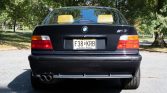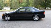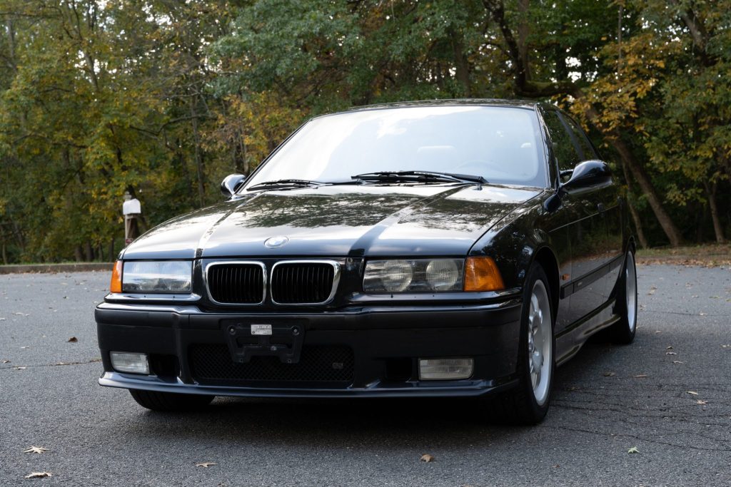 This 1998 BMW M3 sedan is finished in black over tan leather and is powered by a 3.2-liter inline-six paired with a five-speed manual transmission and a limited-slip differential. Equipment includes 17″ Style 39 wheels, fog lights, a sunroof, air conditioning, a Harman Kardon sound system, and power accessories.