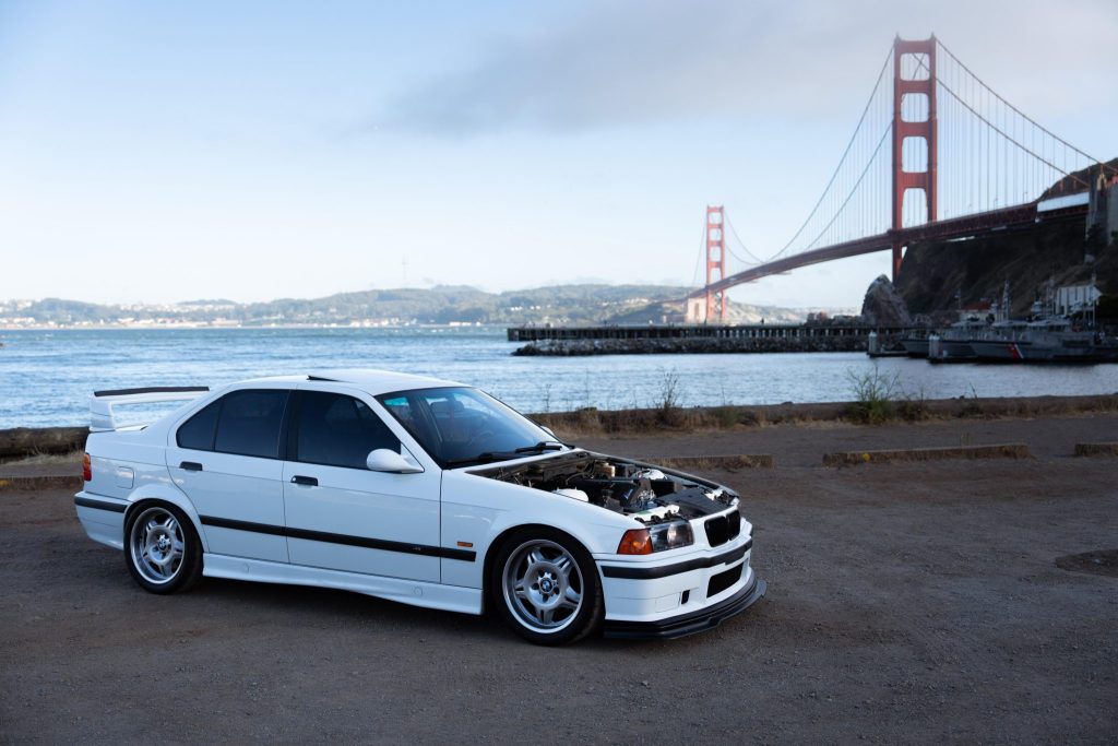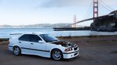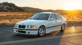 This 1998 BMW M3 sedan is a white-over-black example that was modified under previous ownership with a 3.2-liter S54 inline-six and six-speed manual transmission sourced from an E46 M3. An E46-sourced steering rack and gauge cluster were also retrofitted, while factory equipment includes a sunroof and automatic climate control. Additional modifications consist of HID headlights, 17″ Style 24 forged alloy wheels, BCRacing coilovers, chassis bracing, stability control, a SPAL radiator fan, a Bimmerworld exhaust system, and a Sony…