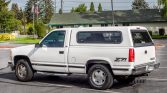 This 1998 Chevrolet K1500 Silverado 4×4 pickup now shows 56k miles with time spent in both Oregon and Hawaii. It is finished in Summit White over gray cloth and is powered by a 5.7-liter V8 linked with a four-speed automatic transmission and a dual-range transfer case. Features include an Airaid air-intake system, a Flowmaster exhaust system, a camper bed top, a receiver hitch, 16″ five-spoke alloy wheels, a power-adjustable split bench seat, an AM/FM stereo, a CD receiver,…