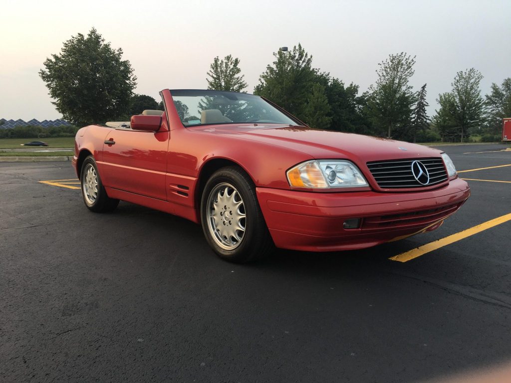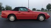 This 1998 Mercedes-Benz SL500 is finished in Imperial Red over beige leather and is powered by a 5.0-liter V8 paired with a five-speed automatic transmission. Equipment includes a power-operated black soft top, a removable hardtop with a glass roof, 16″ alloy wheels, heated and power-adjustable seats, automatic climate control, cruise control, an auto-dimming rear-view mirror, an alarm system, a digital cassette stereo, and a trunk-mounted CD changer. The car was first registered in Florida, and was acquired…