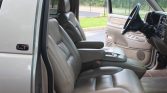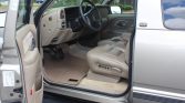 The cabin features seats upholstered in tan leather joined by a matching dashboard and door panels. Additional interior equipment includes air conditioning, cruise control, front seat power lumbar adjustment, a Delco AM/FM cassette stereo with a CD player, and push-button 4WD controls offering high and low ranges as well as “AutoTrac” automatic transfer case engagement.