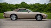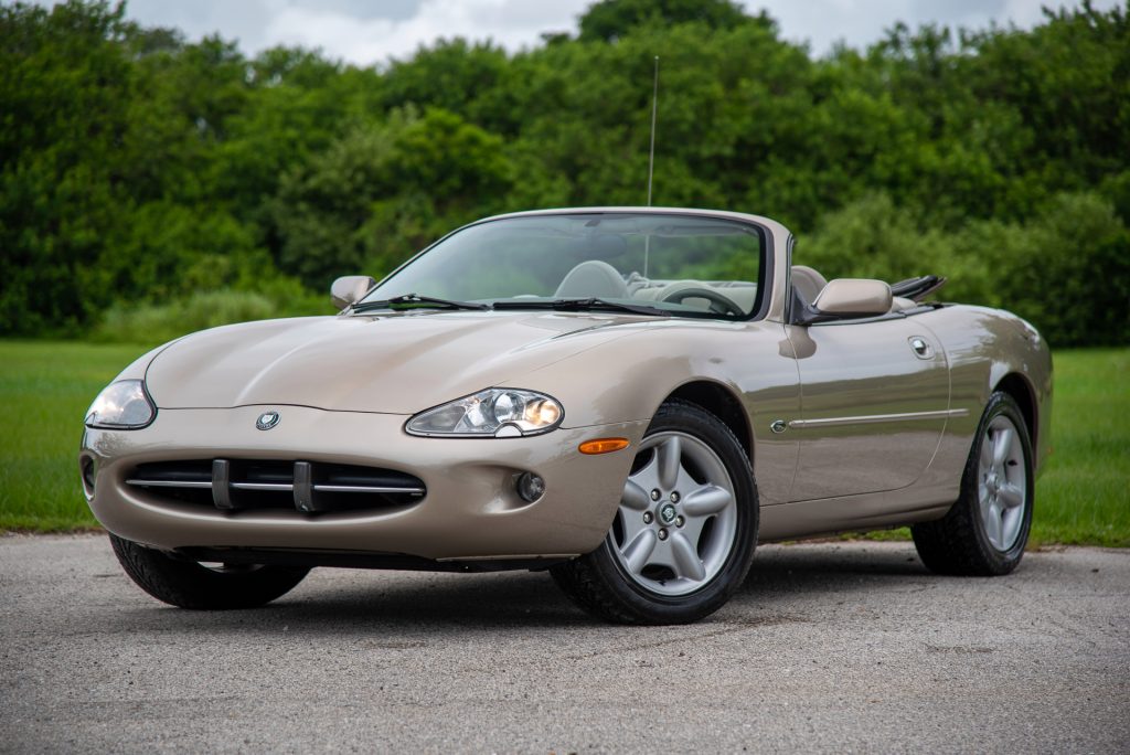This 1999 Jaguar XK8 convertible spent time in Colorado until it was moved to Florida in 2011 and was acquired by the seller in May 2021. The car is powered by a 4.0-liter V8 paired with a five-speed automatic transmission and is finished in Topaz Gold over tan leather. Equipment includes a power-retractable tan soft top, heated and power-adjustable front seats, automatic climate control, a factory cassette stereo, and a trunk-mounted CD changer.