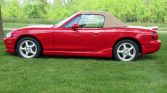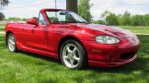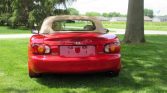 This 1999 Mazda MX-5 Miata is finished in red over tan leather and powered by a 1.8-liter inline-four paired with a five-speed manual transmission. Equipment includes a tan soft top, 15″ alloy wheels, air conditioning, cruise control, and Bose audio with cassette and CD players. The car has been registered in Illinois from new and was acquired by the seller in 2020.