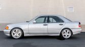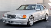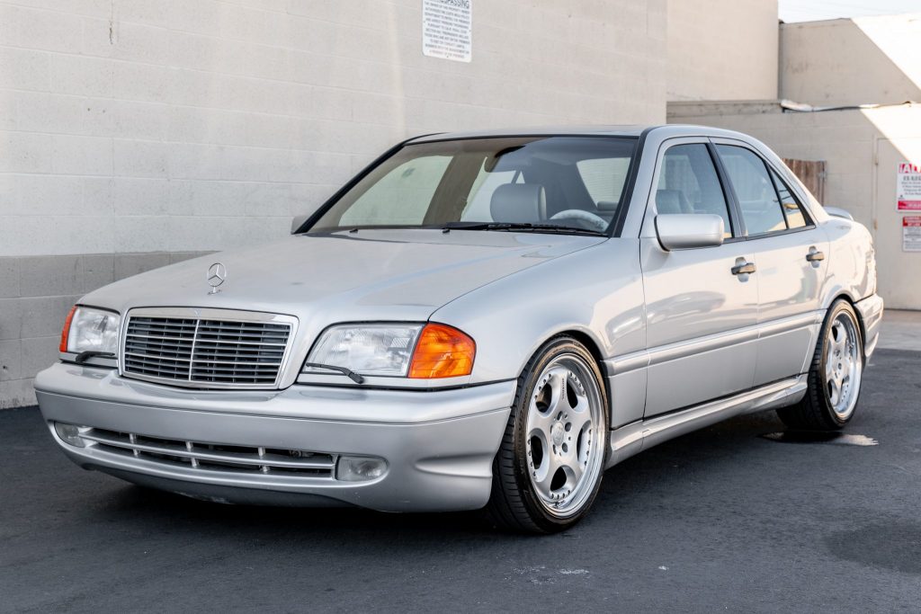 This 1999 Mercedes-Benz C43 AMG is one of 1,425 examples produced for the US market and is powered by a replacement 5.4-liter M113 V8 paired with a five-speed automatic transmission. It is finished in Brilliant Silver over two-tone leather and features cruise control, automatic climate control, a factory Mercedes-Benz stereo, 18″ Brabus wheels, H&R lowering springs, xenon headlights with wipers, and heated and power-adjustable multi-contour seats. The car was first registered in California and remained in the state through its acquisition by the seller in December 2020. Service in April 2021 is said to have consisted of performing a transmission service and oil change, flushing the brake fluid, and replacing the rear crankshaft seal, power steering reservoir, and cabin air filter.
