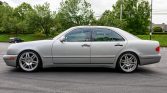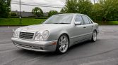 This 1999 Mercedes-Benz E55 AMG was first registered in Pennsylvania and spent much of its life in Georgia, where it was acquired by the seller in 2005. The car is finished in Brilliant Silver Metallic over Blueberry leather and is powered by a 5.4-liter V8 paired with a five-speed automatic transmission. Equipment includes aftermarket multi-piece 19” wheels, fog lights, xenon headlights, rain-sensing wipers, a sunroof, a rear window sunshade, heated and power-adjustable front seats, and a trunk-mounted…
