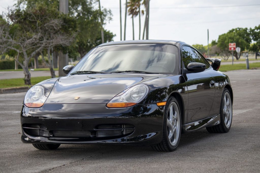This 1999 Porsche 911 Carrera is finished in black over black leather, and it is powered by a 3.4-liter flat-six paired with a six-speed manual transaxle. Optional equipment includes Aerokit bodywork, 18″ hollow-spoke wheels, aluminum interior trim, power-adjustable seats, a Hi-Fi speaker system, a remote CD changer, and an onboard computer. Service in preparation for the sale is said to have consisted of replacing the tires and performing an oil change.