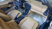 The cabin features seats trimmed in Savanna Beige leather (SK) with a matching dashboard, door panels, and carpets. Equipment includes air conditioning, cruise control, a wind deflector, powered and heated door mirrors, power windows, and an aftermarket Blaupunkt Toronto stereo with Bluetooth compatibility and a remote control.