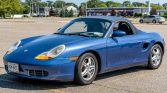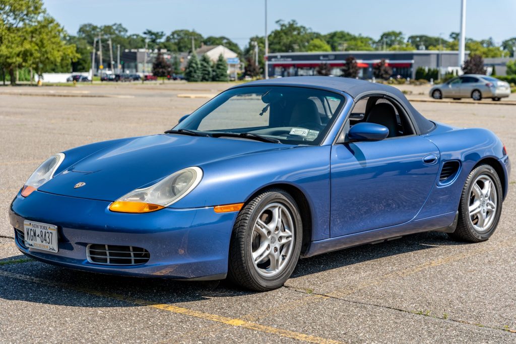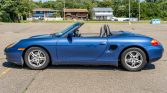 This 1999 Porsche Boxster is finished in Zenith Blue Metallic over Graphite Grey leather and is powered by a 2.5-liter flat-six paired with a five-speed manual transaxle. Equipment includes a Metropol Blue convertible top, a body-colored removable hardtop, 16″ alloy wheels, automatic climate control, a wind deflector, and a Kenwood touchscreen stereo. The car was first sold by Porsche of Princeton in New Jersey, and it was acquired by the seller in 2020 and now has 28k miles.