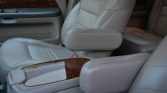 The cabin offers seating for eight across three rows that are upholstered in Medium Parchment leather along with matching carpets and trim. Amenities include heated and power-adjustable front captain’s chairs, front and rear air conditioning, cruise control, and a center console mounted six-disc CD changer. The seller states that all five door lock actuators were recently replaced and that the front driver and passenger seat bottoms have been reupholstered.