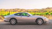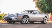 This 2000 Jaguar XK8 coupe is powered by a 4.0-liter V8 paired with a five-speed automatic transmission and is finished in silver over black leather upholstery. Equipment includes optional 18″ sport wheels, the weather package, speed-sensitive steering, stability control, cruise control, the premium sound package, navigation, power-adjustable seats, automatic climate control, and burl walnut interior trim.