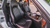 The wood-trimmed and leather-wrapped steering wheel frames a 170-mph speedometer, a 7,500-rpm tachometer, and auxiliary gauges. The odometer indicates 55k miles, approximately 9k of which were added by the seller.
