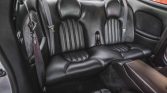 The seating surfaces are upholstered in Charcoal leather with burl wood veneer aLenting the dashboard, center console, and door panels. Equipment includes power-adjustable front seats, automatic climate control, a navigation system, a trunk-mounted CD changer, cruise control, and metal door sill plates.