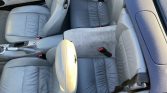The cabin is upholstered in draped gray leather with a matching dash, door panels, and carpeting. Amenities include eight-way power-adjustable and heated front seats, a carbon fiber-trimmed shift knob and handbrake lever, automatic climate control, a Porsche CDR-220 head unit, a front-trunk-mounted six-disc CD changer, and a sound system with digital signal processing. The ashtray has been replaced with a coin box, and the center console has a storage shelf in place of the original cassette holder. A wind deflector is included in the sale.