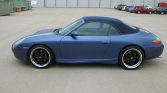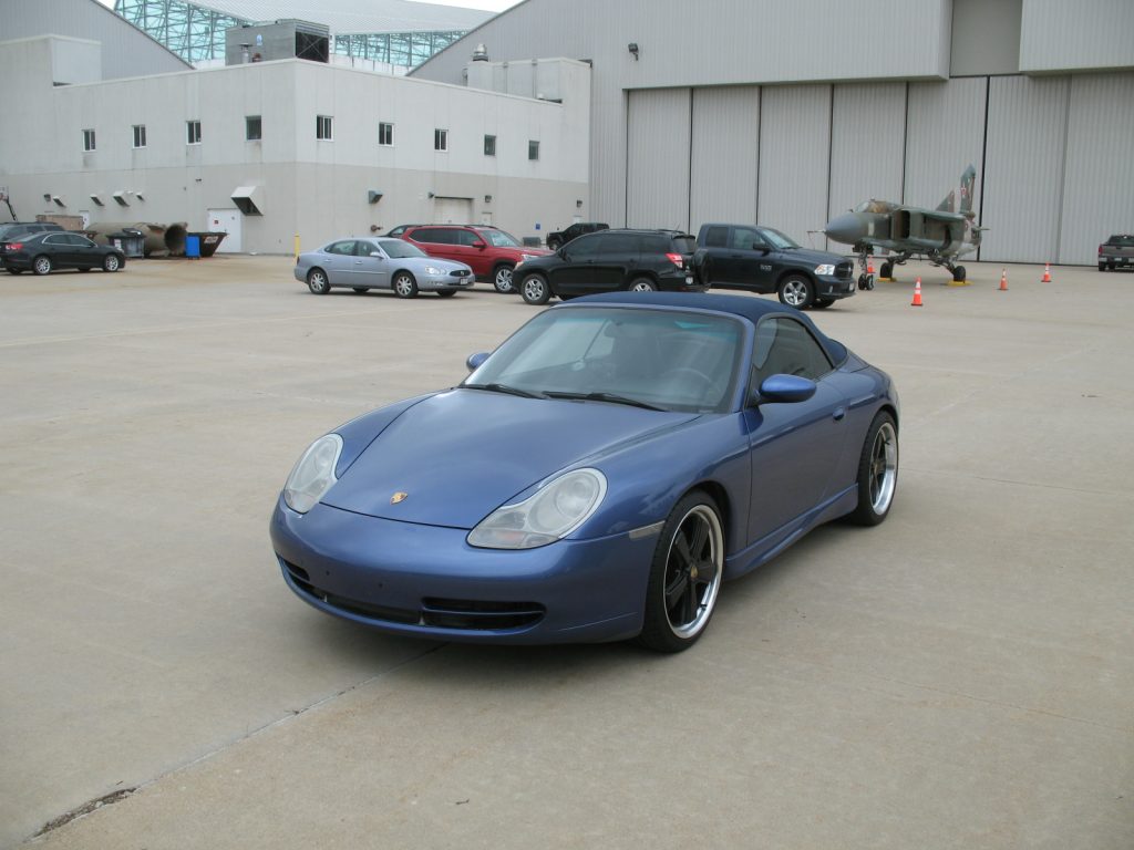 This 2000 Porsche 911 Carrera cabriolet is finished in Zenith Blue Metallic over a black leather interior and is powered by a 3.4-liter flat-six paired with a six-speed manual transaxle. Additional equipment includes a replacement blue soft top, power-adjustable heated front seats, sculpted rocker moldings, and 19″ Fuchs-style wheels. Work performed under current ownership included installation of a Sony touchscreen head unit as well as replacement brake pads and tires, and an oil change was performed in…