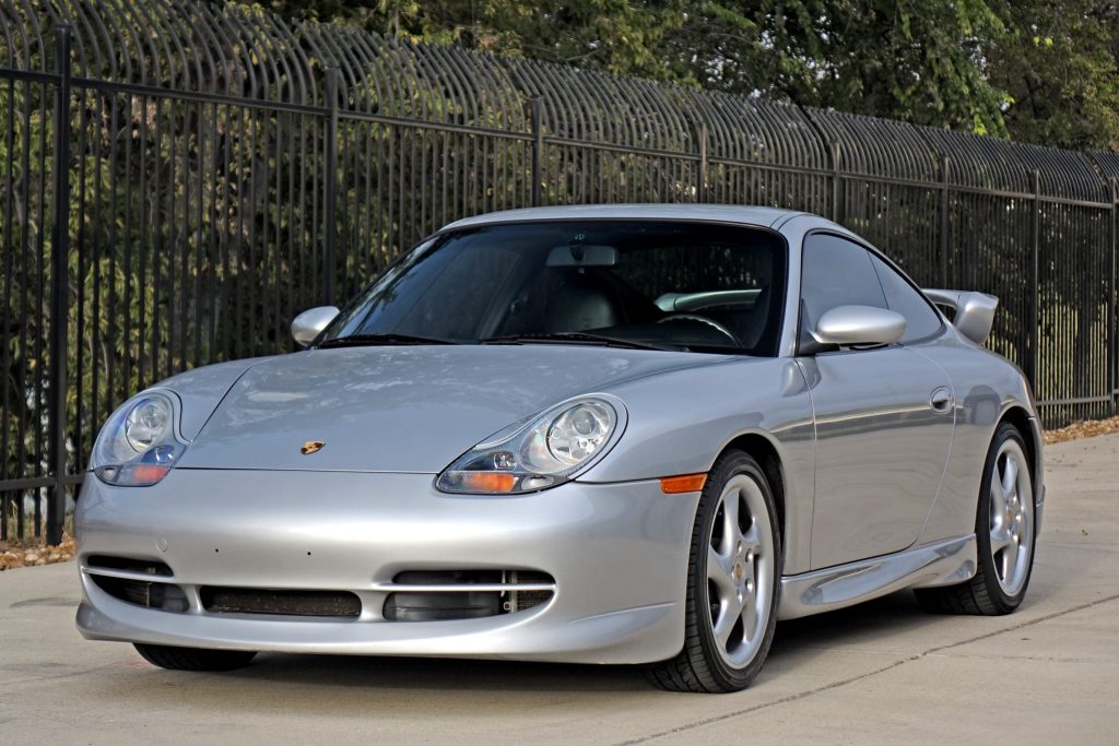 This 2000 Porsche 911 Carrera coupe is finished in Arctic Silver Metallic over black leather and is powered by a 3.4-liter flat-six mated to a five-speed Tiptronic automatic transaxle. Additional equipment includes Aerokit bodywork, rear bumper side fins, stainless-steel tailpipes, 18″ turbo-look wheels, Litronic headlamps, power-adjustable heated front seats, a body-color center console, and aluminum-look instrumentation.