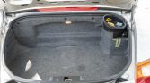 The cockpit features seating upholstered in black leather along with a matching dashboard, door panels, and carpets. Amenities include automatic climate control, cruise control, a wind deflector, body colored roll hoops, stainless-steel Boxster-branded door sill guards, aluminum inlays on the handbrake and shifter, and Porsche Communication Management with a CD/cassette stereo system, navigation, and a front trunk-mounted six-disc CD changer.