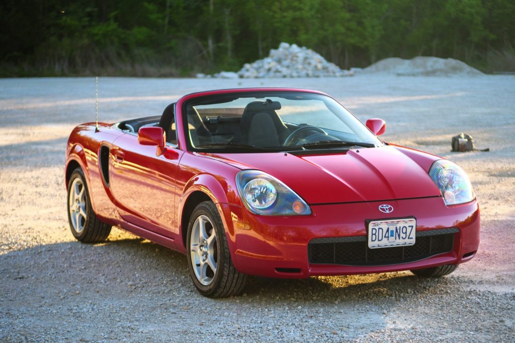 This 2000 Toyota MR2 is finished in Absolutely Red over a black cloth interior, and power is provided by a 1.8L inline-four paired with a five-speed manual transaxle. Equipment includes a manually-retractable black soft top, air conditioning, a factory CD and cassette stereo, and four-wheel anti-lock disc brakes. The car was first registered in Indiana and resided in Illinois and Missouri before being acquired in 2020 by the seller, who has since added approximately 6k of the 64k indicated miles. Reported service under current ownership has included replacing the front struts, mounting replacement tires, performing an oil change, cleaning the mass airflow sensor, and replacing the spark plugs and engine air filter.