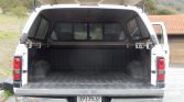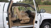 Polished 16″ eight-lug wheels wear 265/75 Michelin tires. The truck features automatically locking front hubs, and braking is handled by four-wheel anti-lock discs. The truck is equipped with the Trailer Tow Group, the Heavy Duty Snow Plow Group, and the Camper Special Group, which added a rear sway bar and helper springs.