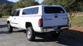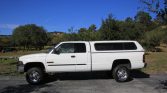 This 2001 Dodge Ram 2500 Laramie SLT Plus is a Quad Cab 4×4 example that was reportedly purchased new by the seller’s brother from Zangara Dodge of Albuquerque, New Mexico. The truck is finished in white over tan leather and is powered by a high-output 5.9-liter Cummins turbodiesel inline-six paired with a six-speed manual transmission, a dual-range transfer case, and a limited-slip rear differential. Equipment includes heated power-adjustable front seats, an aftermarket trailer brake controller, a backup camera, a color-matching camper shell, power windows and locks, air conditioning, cruise control, and an AM/FM/cassette/CD stereo.