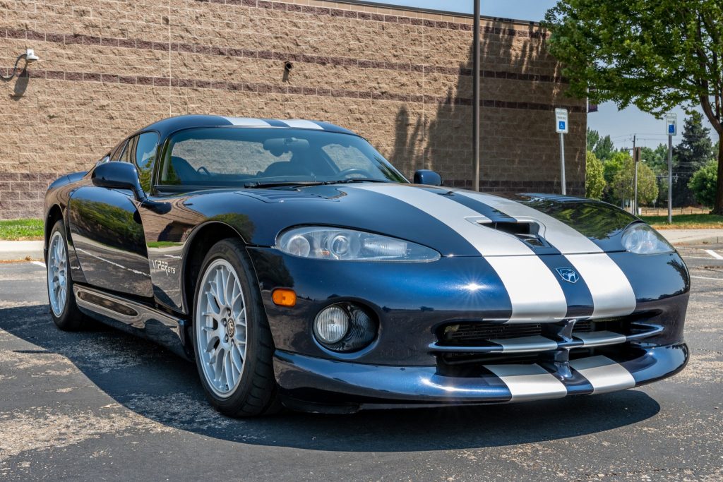 This Dodge Viper GTS is one of 85 examples that were finished in Deep Sapphire Blue Pearl with silver stripes over black leather for the 2001 model year, and it is powered by an 8.0-liter V10 paired with a six-speed manual transmission. Equipment includes a limited-slip differential, air conditioning, and an Alpine CD stereo, while modifications consist of 18″ BBS wheels, smooth air intake hoses, and a Borla exhaust system. The car was delivered new to Woodhouse…