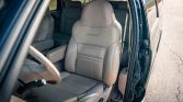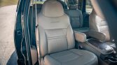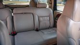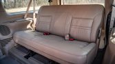 The seating surfaces are upholstered in Medium Parchment leather, and the cabin features a matching dashboard and carpets as well as woodgrain trim on the door panels and center console. The driver seat is power-adjustable, and both front captain’s chairs are heated with embroidered backrests. Amenities include front and rear air conditioning, cruise control, an aftermarket Sony stereo, and a rear DVD entertainment system with separate audio controls.
