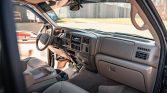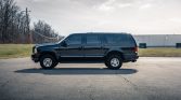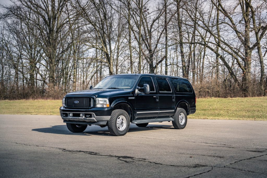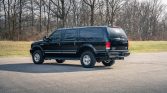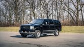 This 2001 Ford Excursion Limited is finished in black over Medium Parchment leather, and it is powered by a 7.3-liter turbodiesel V8 paired with a four-speed automatic transmission, a dual-range transfer case, and a limited-slip rear differential. Other equipment includes 16″ alloy wheels, locking front hubs, illuminated running boards, heated front captain’s chairs, front and rear air conditioning, cruise control, and a rear DVD entertainment system.