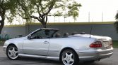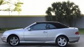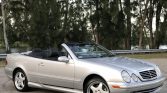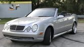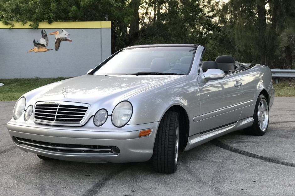 This 2001 Mercedes-Benz CLK430 convertible is finished in silver over anthracite leather and is powered by a 4.3-liter V8 paired with a five-speed automatic transmission. Equipment includes a power-operated black soft top, the AMG styling package, wood trim, dual-zone automatic climate control, cruise control, 17” AMG wheels, and power-adjustable front seats with memory settings. Maintenance in preparation for sale is said to include fluid and filter services, a recharge of the air-conditioning system, and replacement of the oil pan gasket and valve cover gaskets.