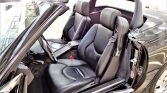 The cabin features seating surfaces upholstered in black Nappa leather, a matching dashboard and door panel inserts, branded floor mats, and burl walnut root veneer aLents. Equipment includes power aLessories, automatic climate control, a factory cassette stereo, Bose audio, and an automatically deploying roll bar.