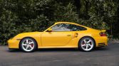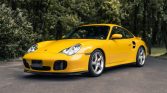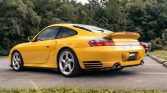 This 2001 Porsche 911 Turbo is finished in Speed Yellow over black full leather and is powered by a twin-turbocharged 3.6L flat-six mated to a six-speed manual transaxle and all-wheel drive. Equipment includes an electric sunroof, 18″ Turbo Twist wheels, heated hard-back sports seats, carbon-fiber cabin trim, and Porsche Communication Management with navigation. Recent service is said to have involved an oil change and replacement of a lift valve solenoid, the alternator, and the front trunk shocks.