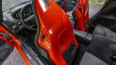 The heated front sport seats have body-color-painted hard seatbacks and are upholstered in black leather that extends to the dashboard and door panels. The car was also ordered with a body-color center console and an aluminum-trimmed shifter and handbrake handle. A Kenwood touchscreen head unit with a CD player, satellite radio capability, and smartphone connectivity has been fitted, and amenities also include the Digital Sound Package, cruise control, automatic climate control, and a K40 radar detector. The removed factory PCM infotainment and navigation system and a spare center console trim piece are included in the sale.